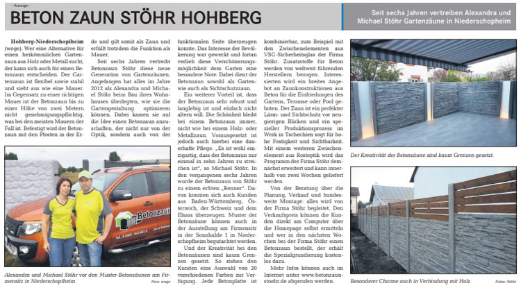 Hierfür stehen Ihnen zahlreiche Farbvarianten zur Verfügung, sowie auflockernde Zwischenelemente aus Acrylglas. Der perfekte Zaun in Sachen Aussehen, Qualität und Langlebigkeit. Betonzaun Stöhr ist Ihr Betonzaunspezialist aus der Ortenau.